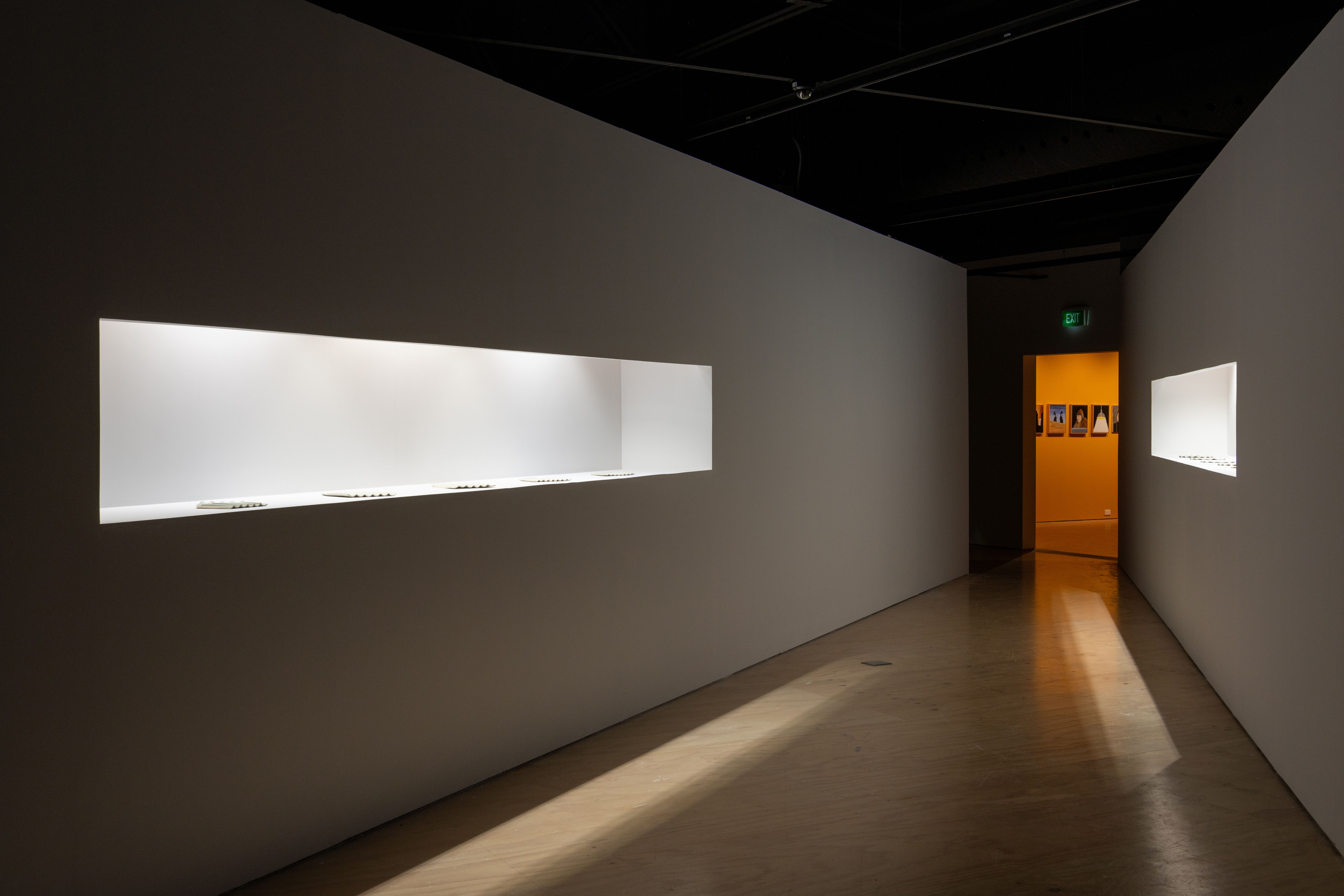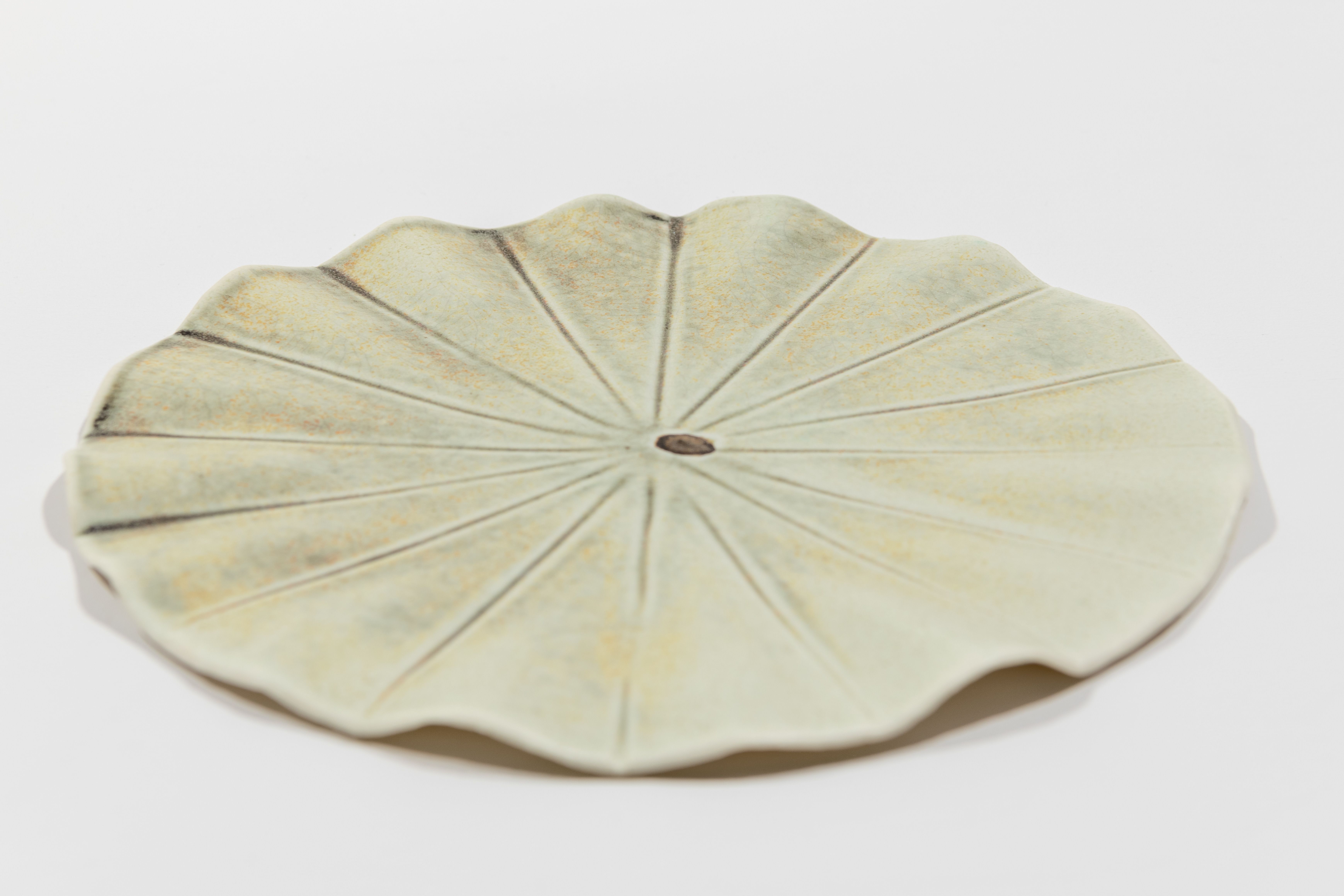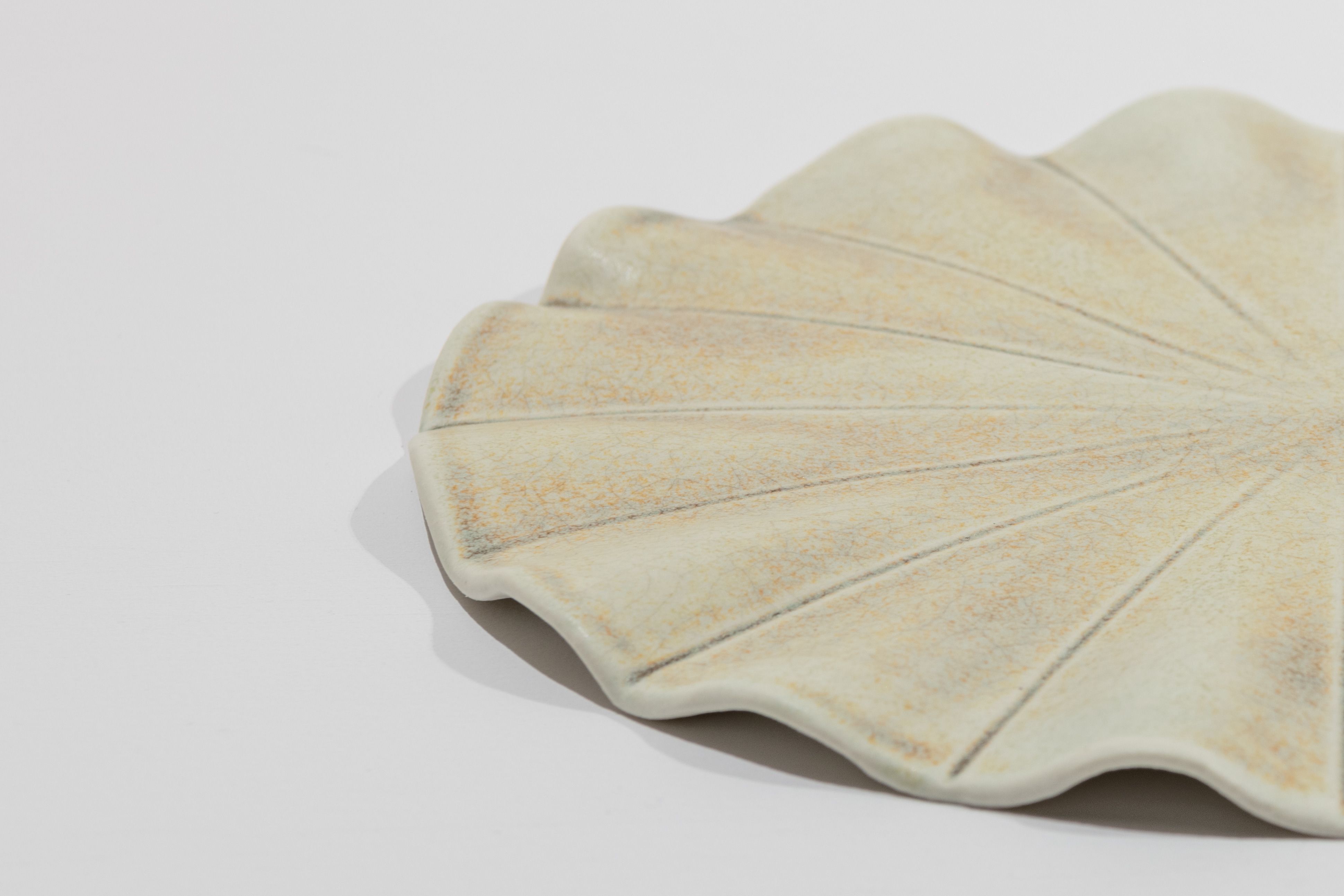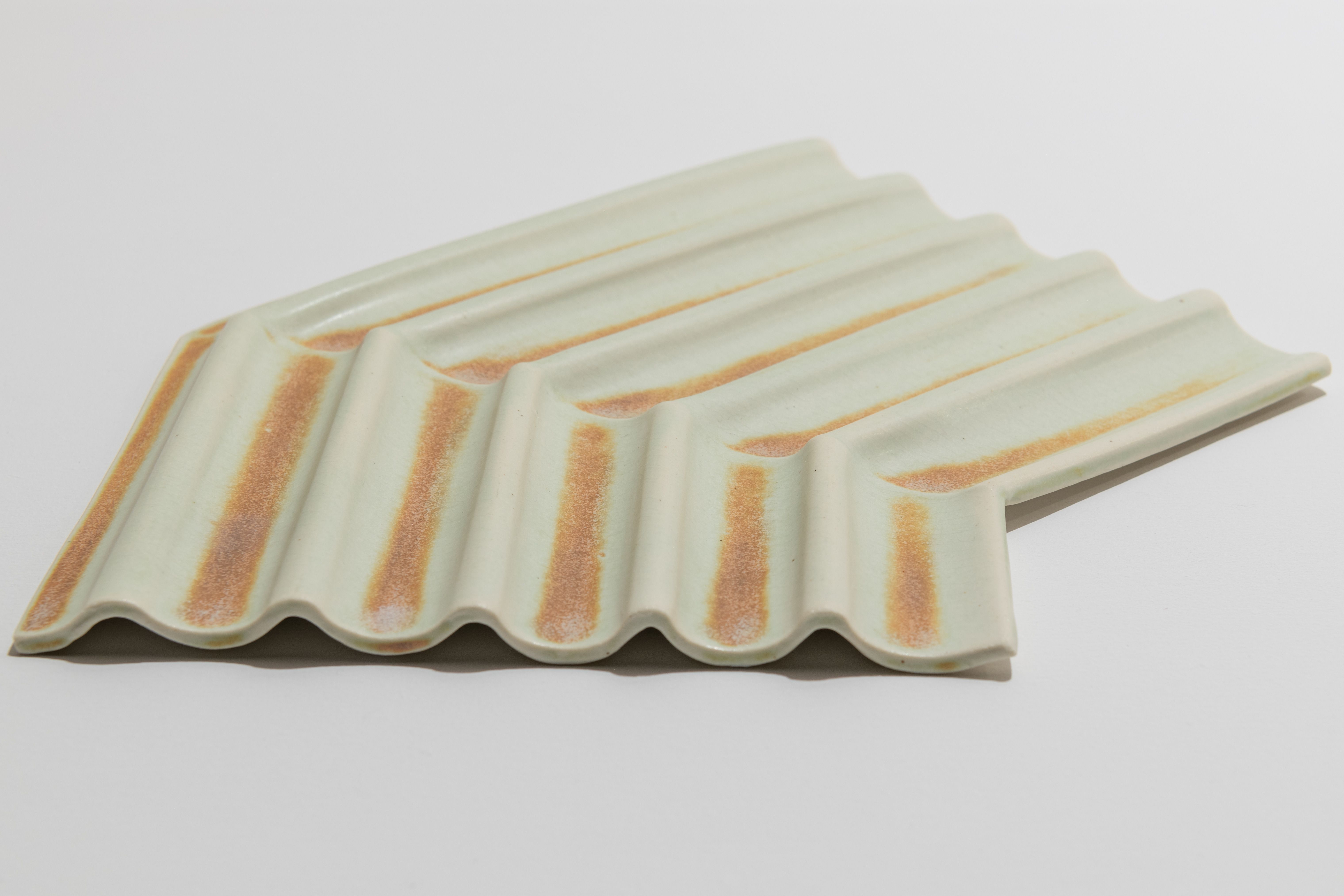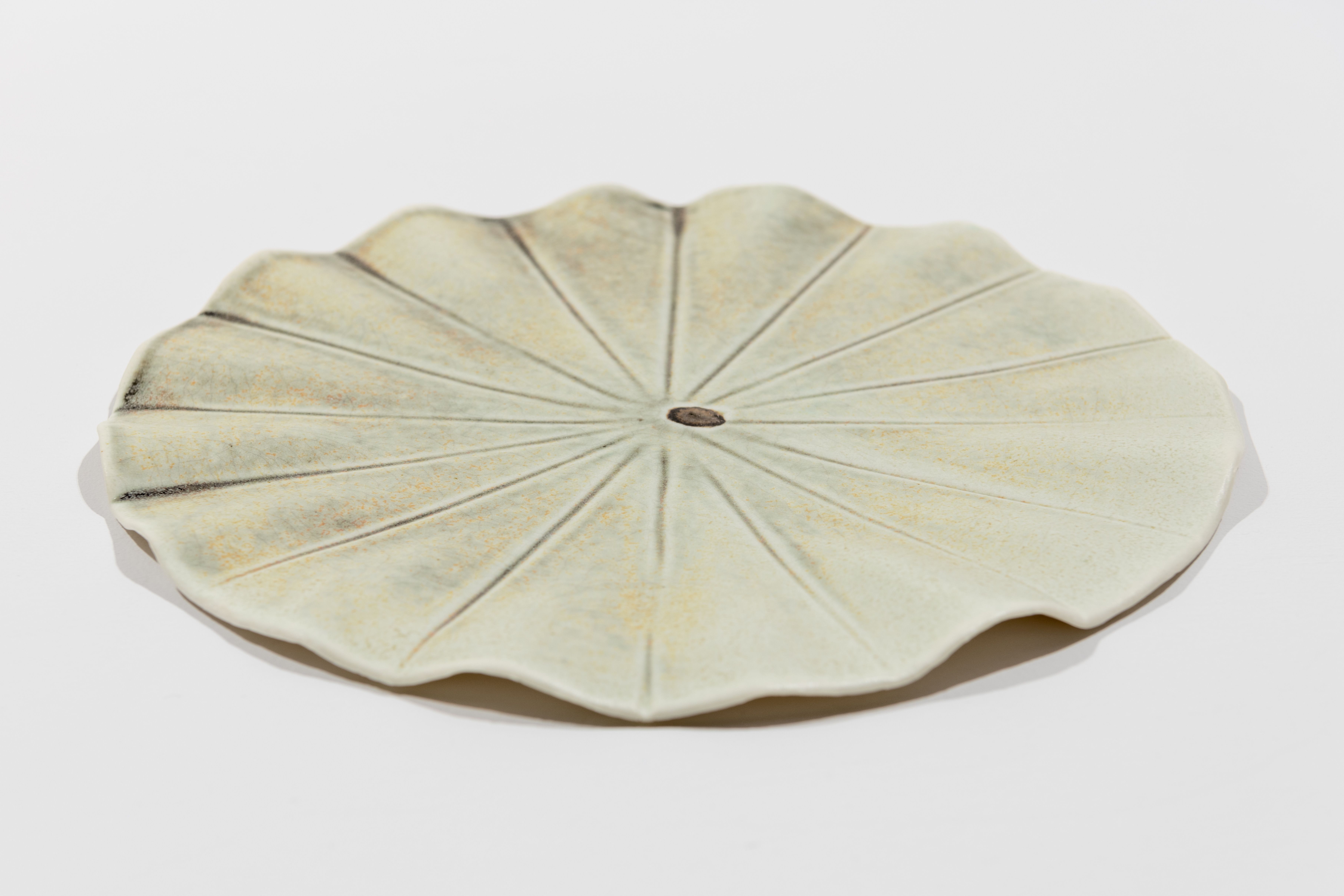 Lauren Winstone’s ceramics may seem an outlier in this group, but their regular, grooved and folded forms also reference the idea of frequency and repetition. The works have the feeling of physical manifestations of a rotational frequency, inanimate traces left behind by the intersection of some unknown oscillation and the potter’s hand. The ridges and folds of Winstone’s works also echo the peaks and valleys of an undulating waveform, their creamy solidity lending them the aspect of flotsam, shells cast ashore by the tides of light and sound found elsewhere in the exhibition.