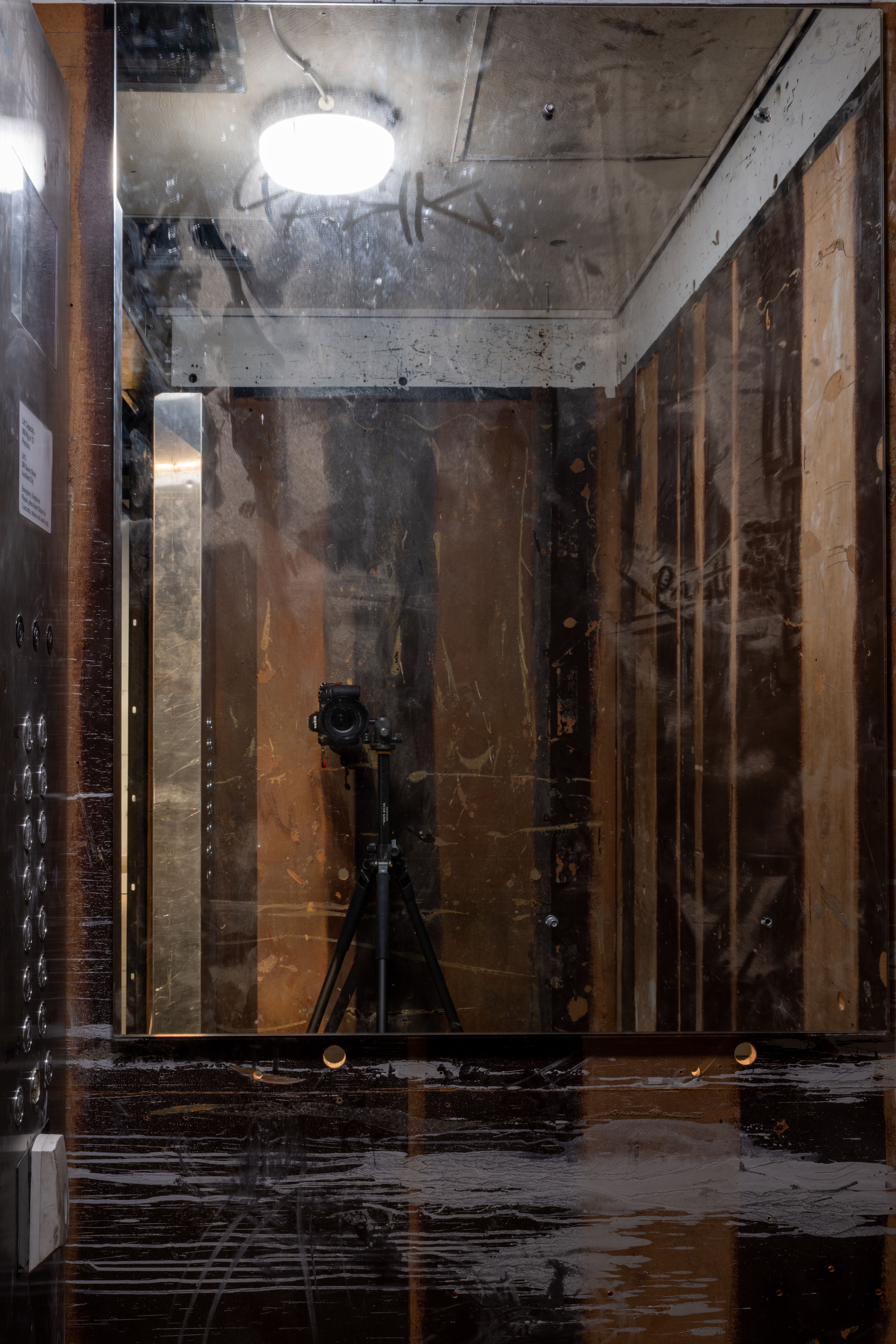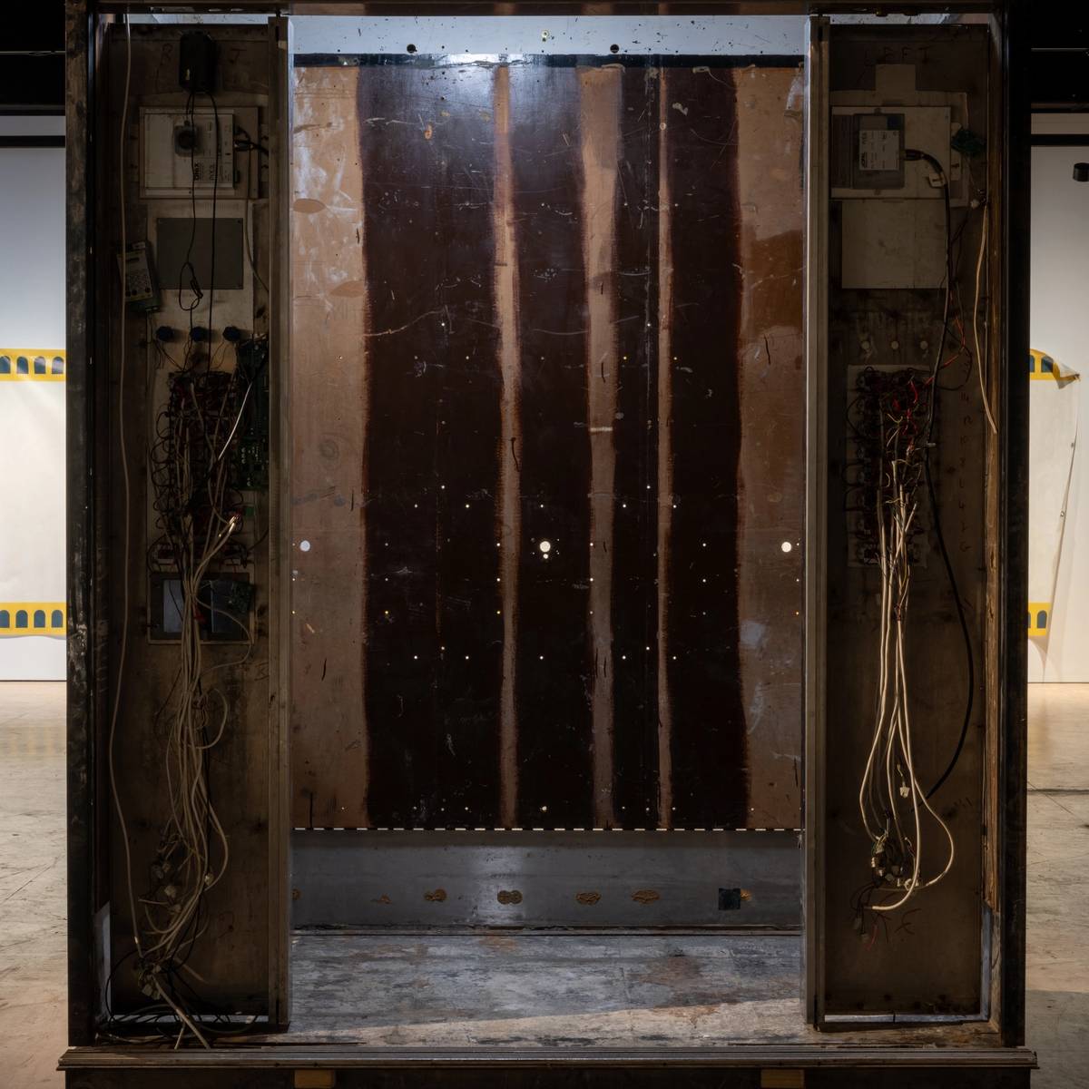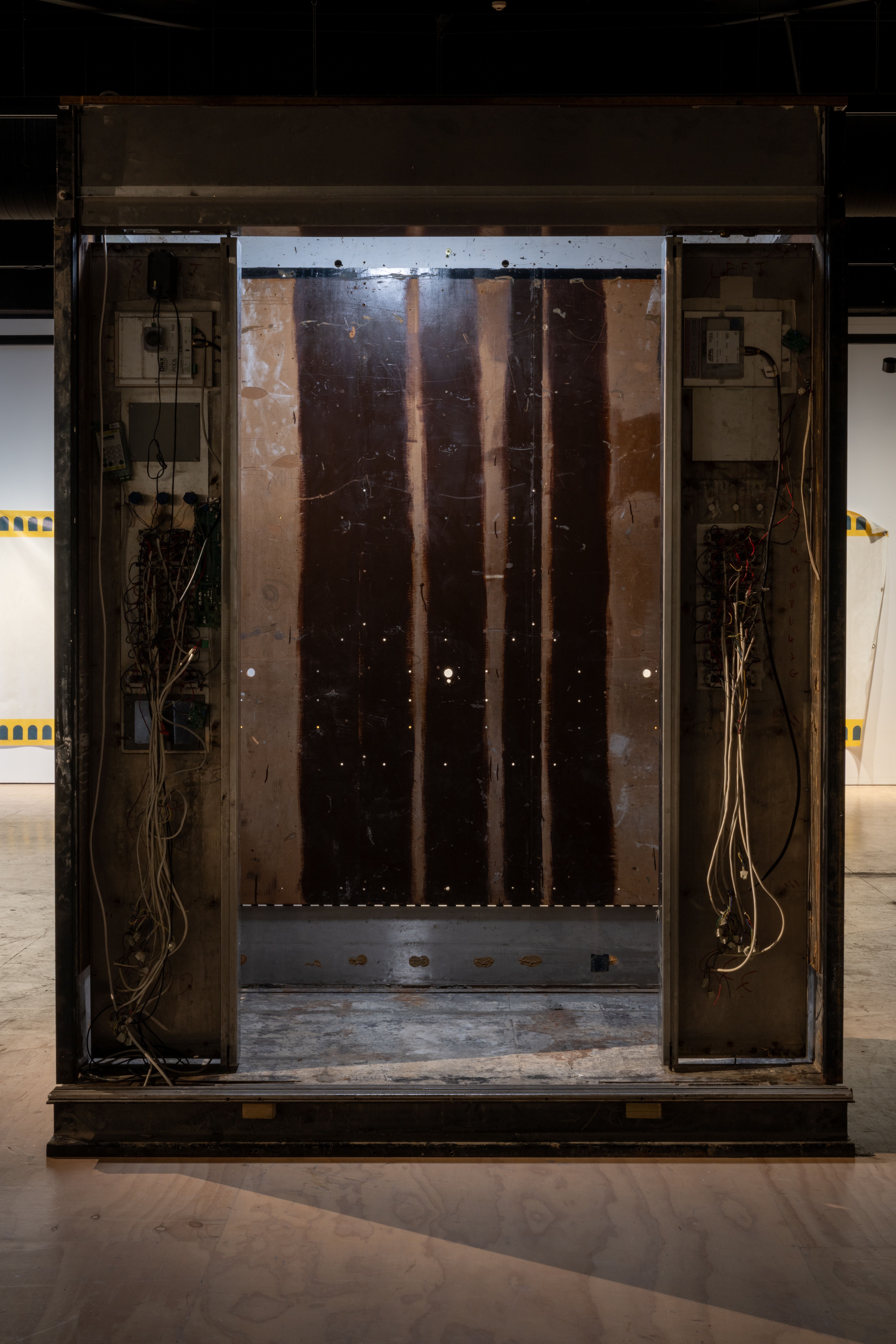 A central part of Broken World is a decommissioned elevator, removed from its shaft and suspended in space. Stripped of function, the elevator is no longer a conduit for movement, but an artifact of halted progression. Where elevators typically embody upward mobility and economic ascent, here they exist in limbo, exposing the hidden infrastructure that once enabled their function. This state of suspension mirrors a more holistic sense of uncertainty in the present moment, as systems once thought to be stable are now revealed to be precarious, subject to forces beyond their control.