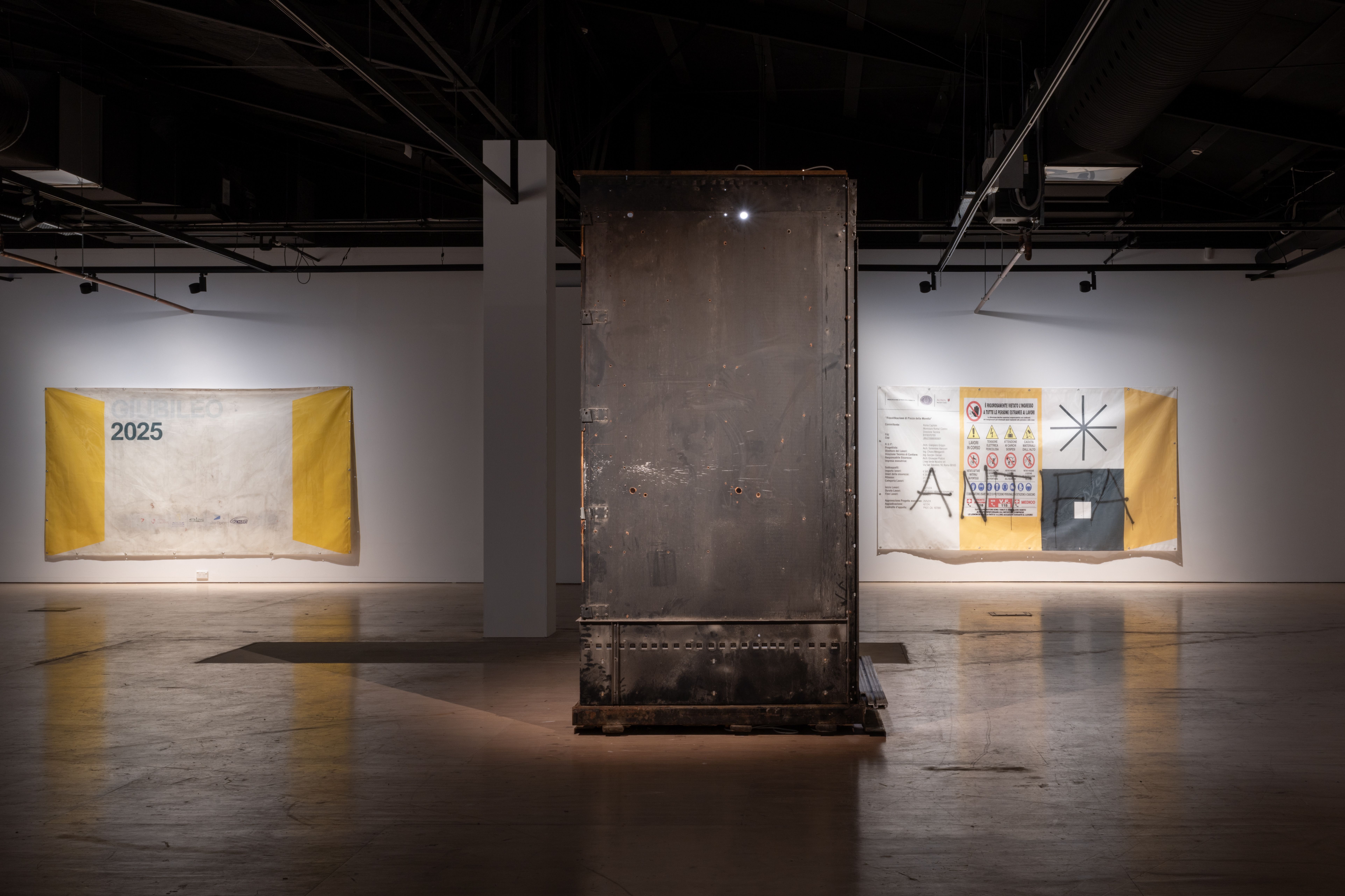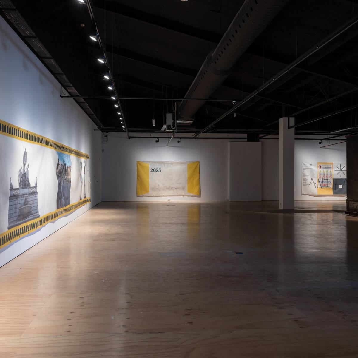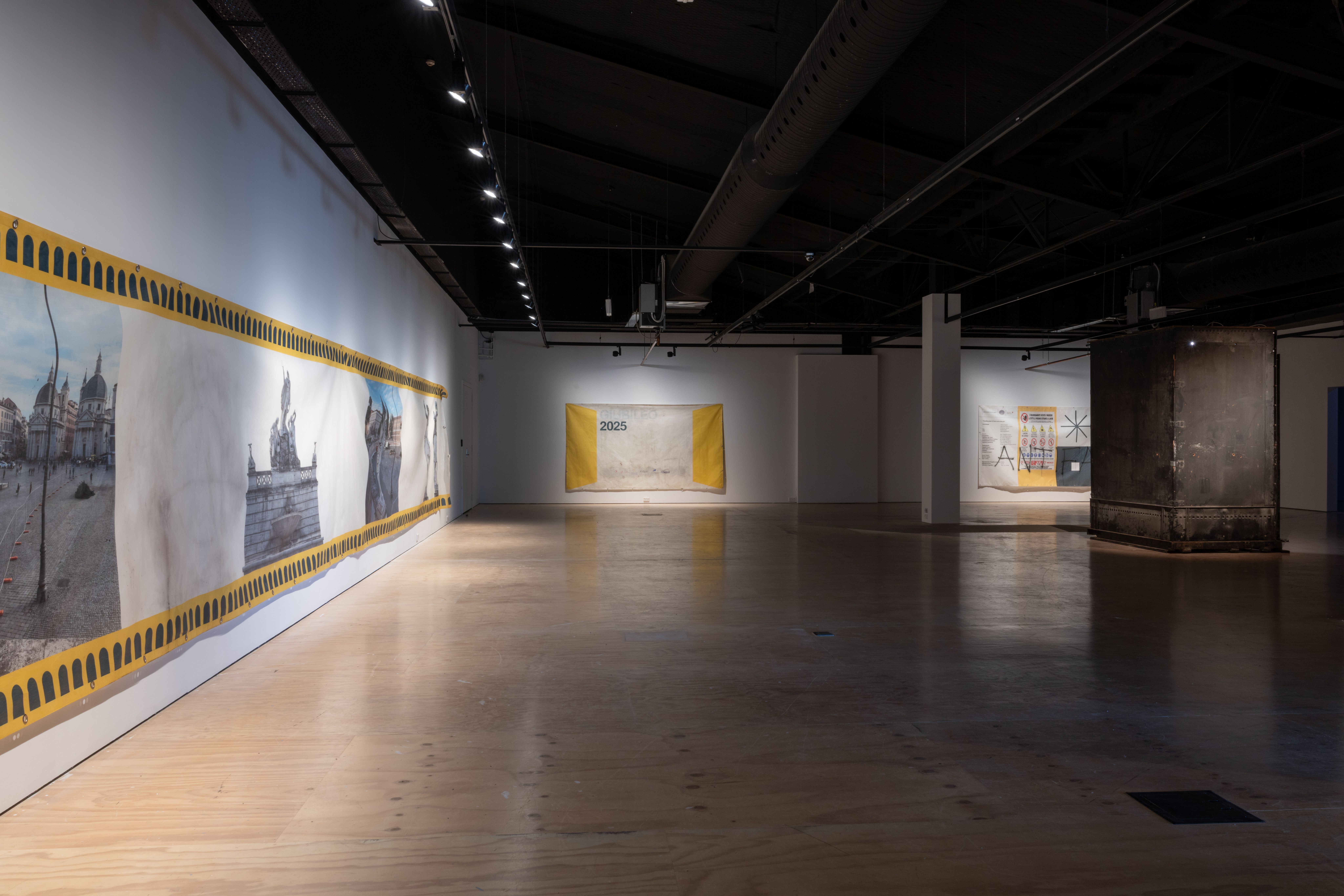 The exhibition transforms the Whangārei Art Museum into a simulated construction site, positioning the museum itself as an evolving structure, shaped by shifting ideologies and priorities. Construction barriers and industrial materials reinforce this sense of flux, prompting reflection on whose histories are preserved and who gets to influence or create cultural narratives. In this environment, the museum is not simply a space of display but an active participant in the exhibition’s themes: a place where meaning is continually dismantled and rebuilt.