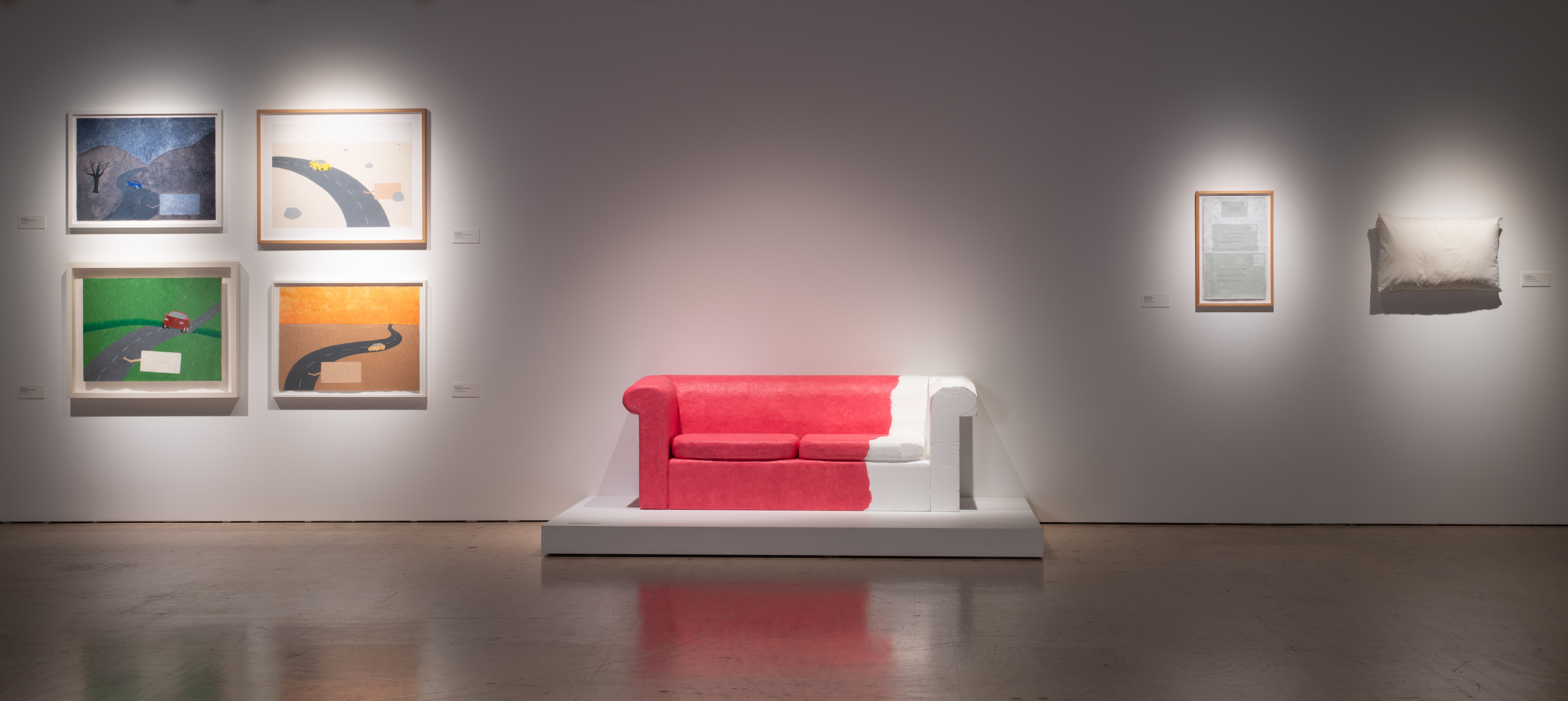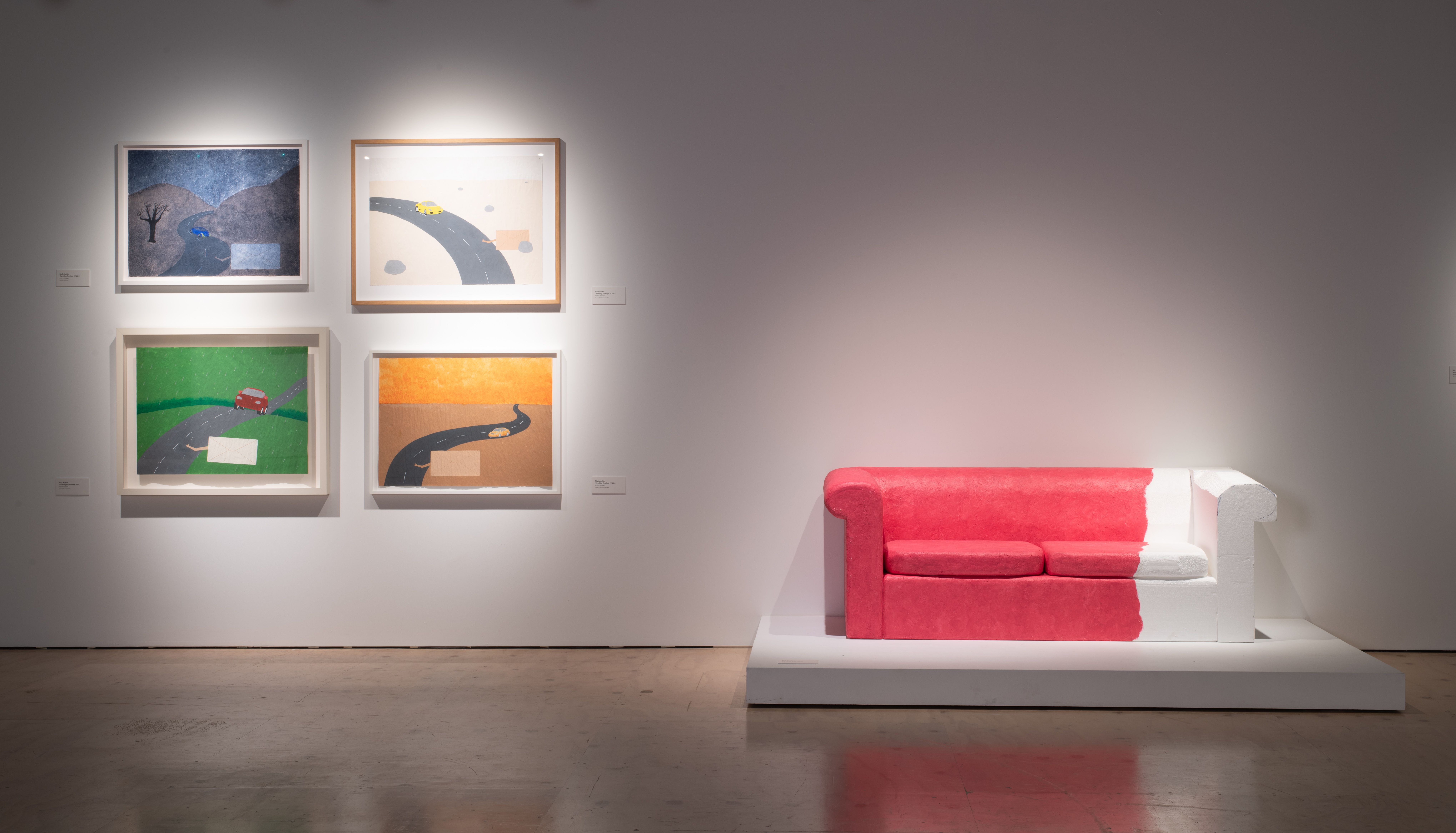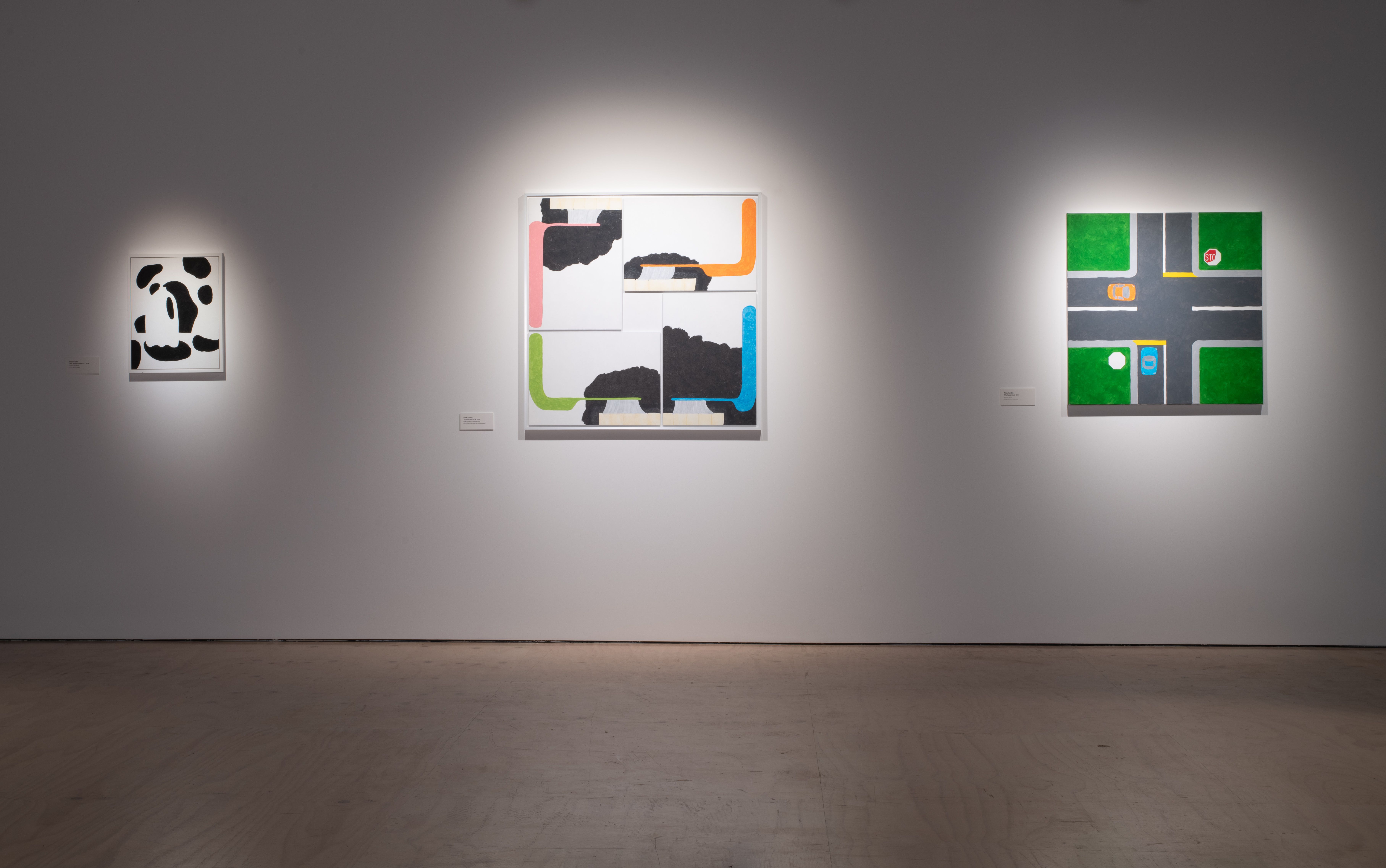 In his paintings and sculptures, Austin explores how to get from A to B in a physical and narrative sense. Roads, vehicles, feet, a map: the works are like collages of beginnings, middles, and punchlines. What just happened? What’s going to happen?